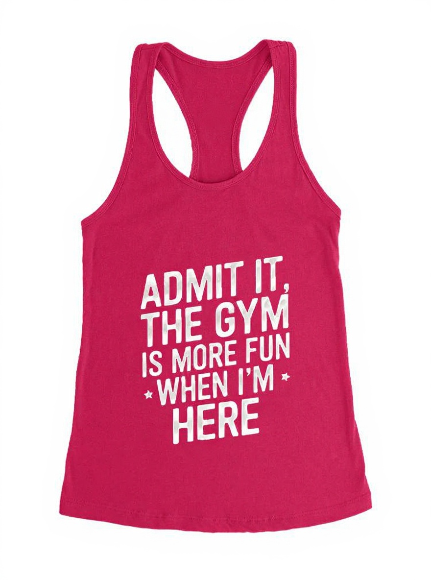 ADMIT IT, THE GYM IS MORE FUN WHEN I’M HERE Gym Racerback Tank