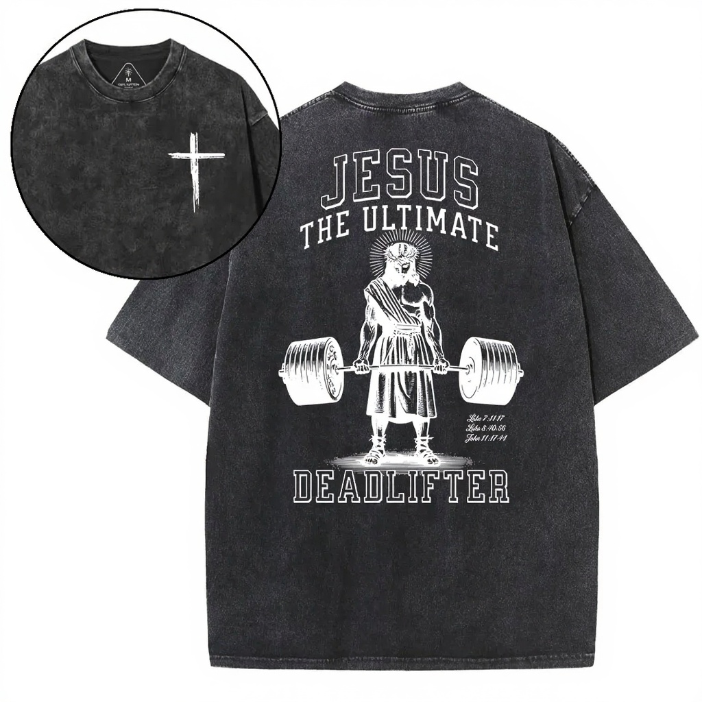 Jesus The Ultimate Deadlifter Chrsitian Washed T-Shirt